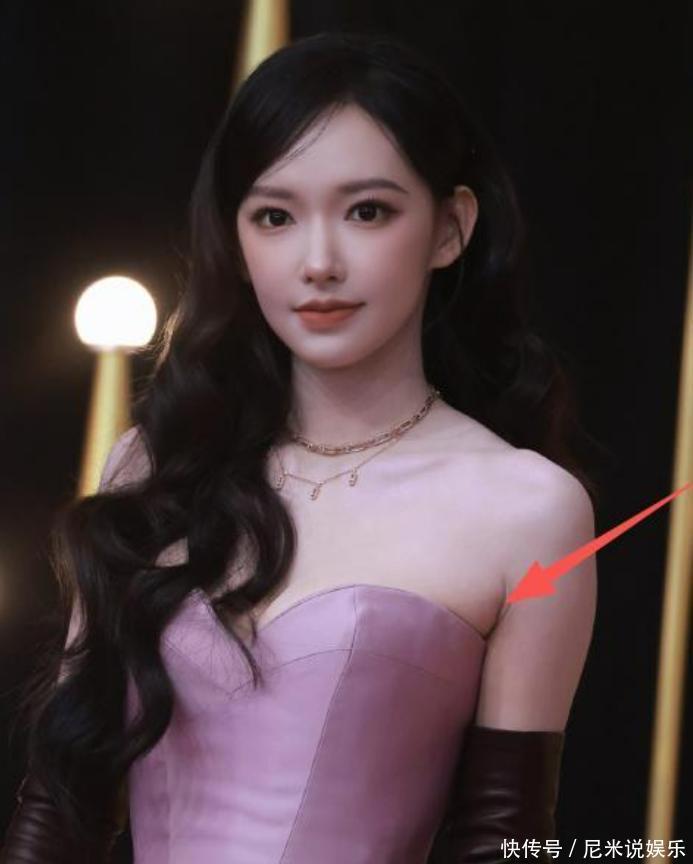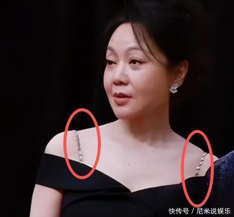 这件黑色礼服正巧有两根金属带子,紧勒在倪妮的肩膀上,正好在肉上压出两道缝儿。这事儿看上去挺怪怪的。再说闫妮的脸也有点肿,妆容显得不太明显,豆沙色的口红更让整个人看起来没有那么亮眼。闫妮那眼睛垂着的模样,感觉就像刚醒还没完全清醒似的。