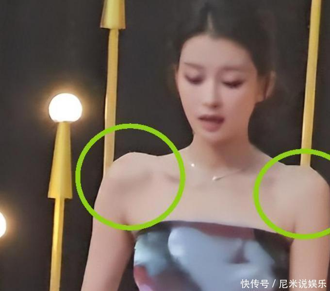 闫妮挑的这个款式啊,感觉有点让人失望。从现场泄露的照片来看,闫妮本身就有点耸肩,肩膀上还有不少肉。